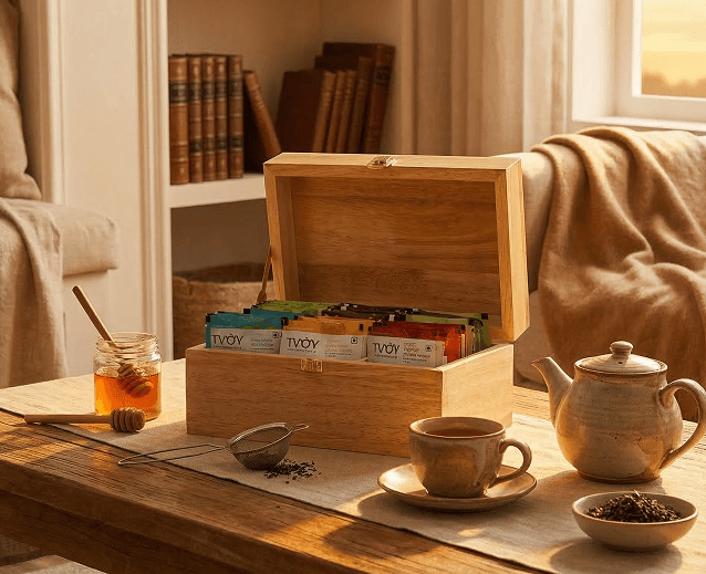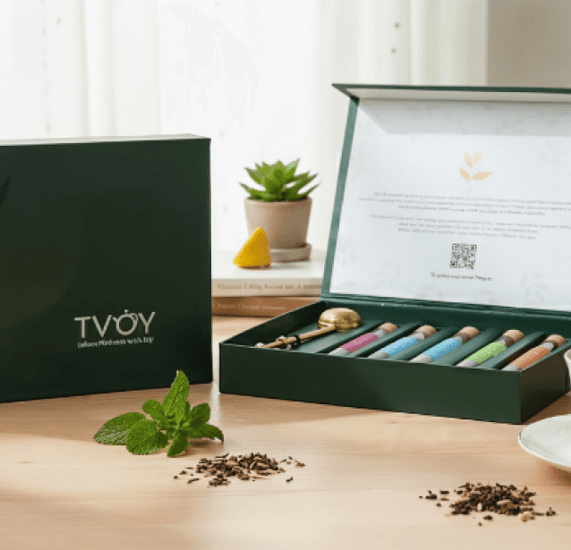 Presented in a sturdy wooden gift box with six compartments and an elegant latch, ROOTED offers a refined selection of teas including classic green teas, wellness blends and floral orthodox varieties.